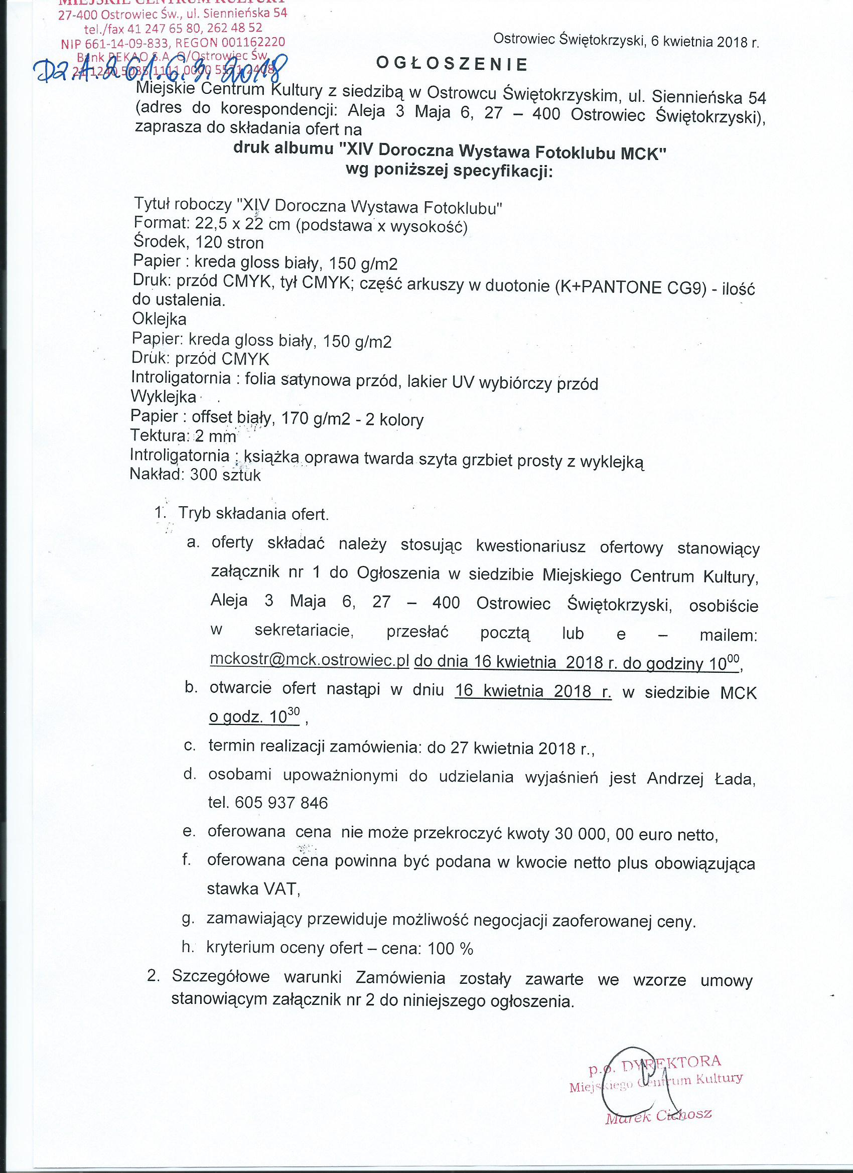 - Przetarg został zaktualizowany przez Norbert Zięba o 2018-04-06 21:03:51